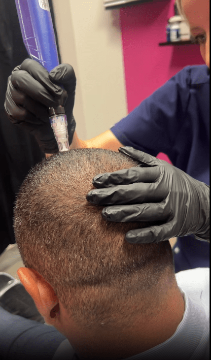 For clients seeking injectable hair loss solutions, we offer both PRP hair restoration and PRF hair restoration. These treatments use your body’s own growth factors to stimulate dormant follicles, increase scalp circulation, and naturally restore hair.